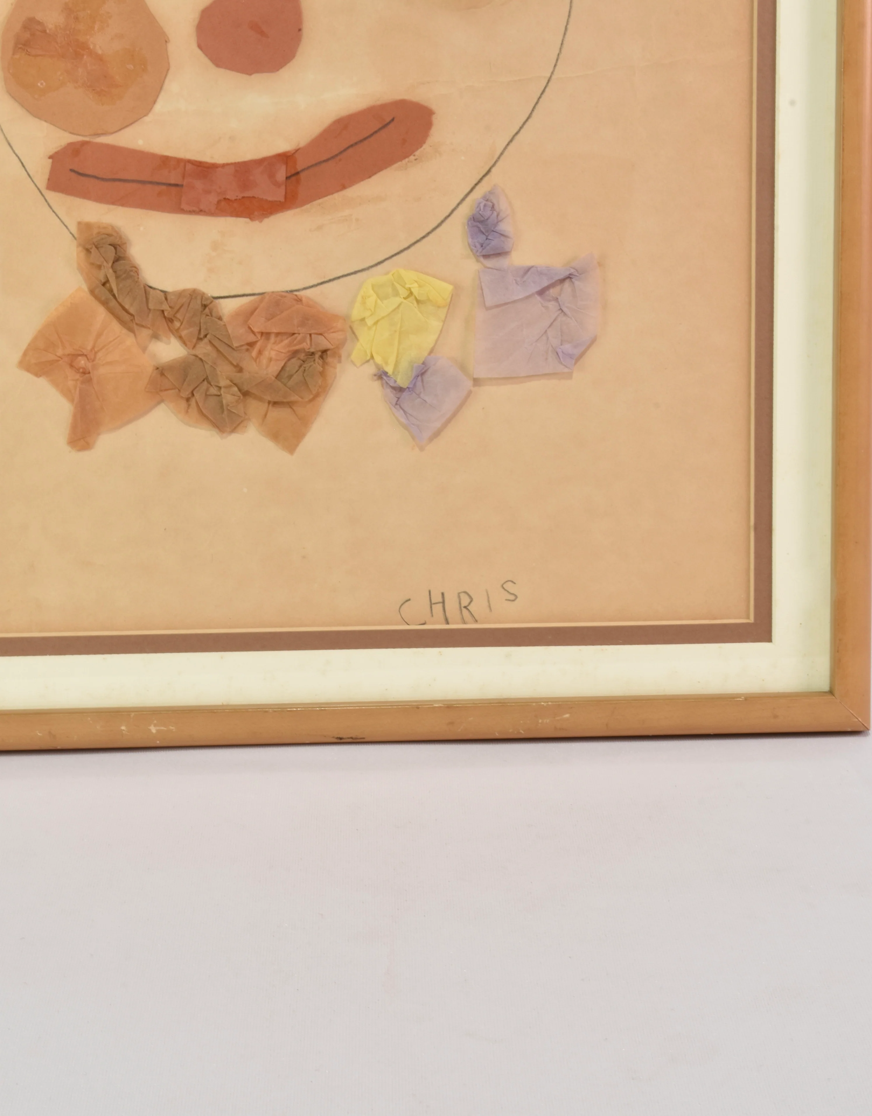 Framed in original wooden frame with a brown and white double matte and a wire on the back for hanging.