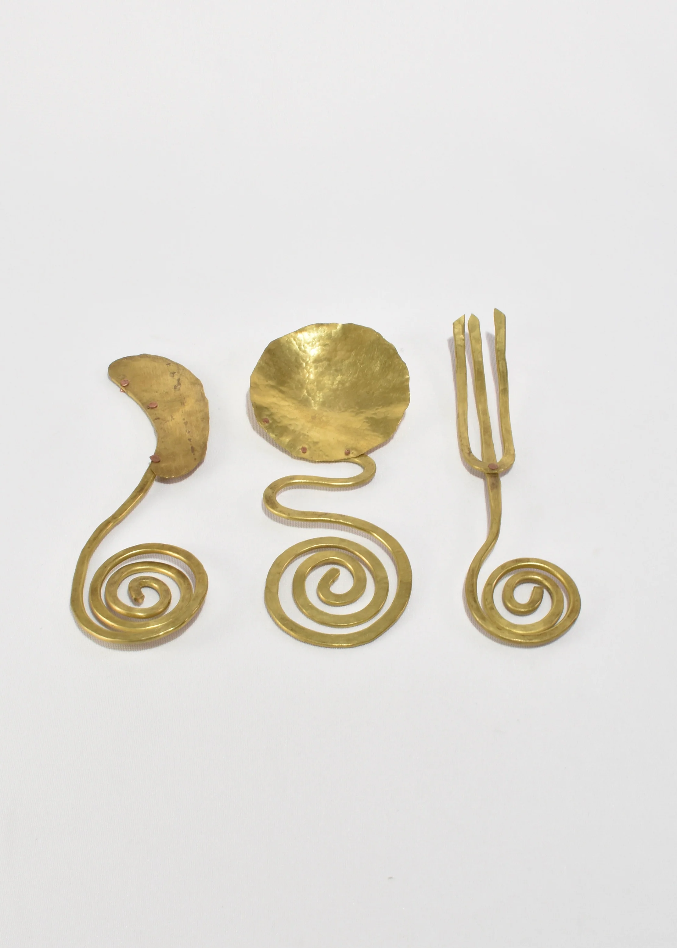 One-of-a-kind brass serving set, handmade by Portuguese artist, Sebastião Lobo. Available exclusively on Casa Shop.