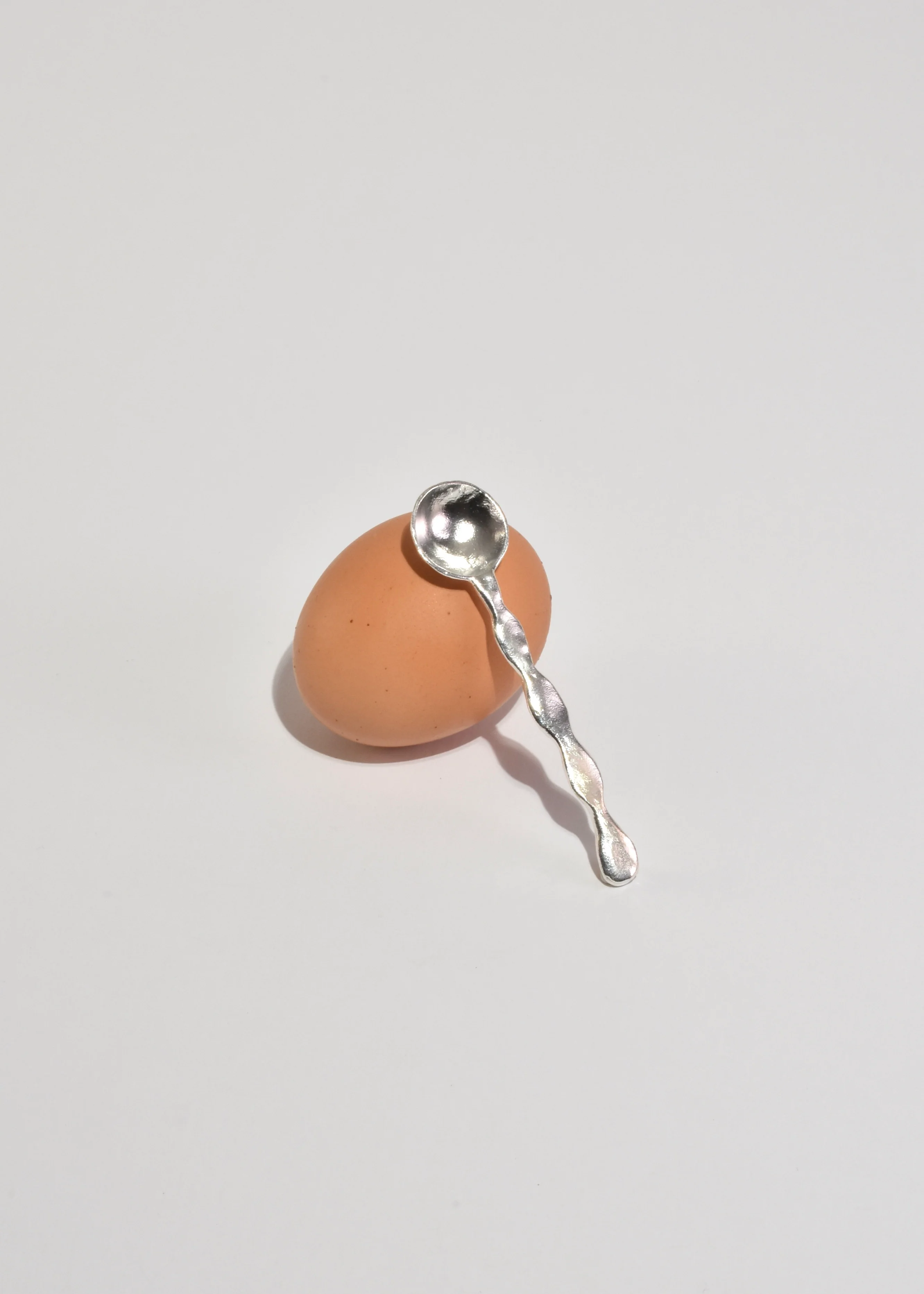 Petite sterling spoon with a subtle curve, handmade in Los Angeles. Note, each piece will have subtle variations unique to each casting.